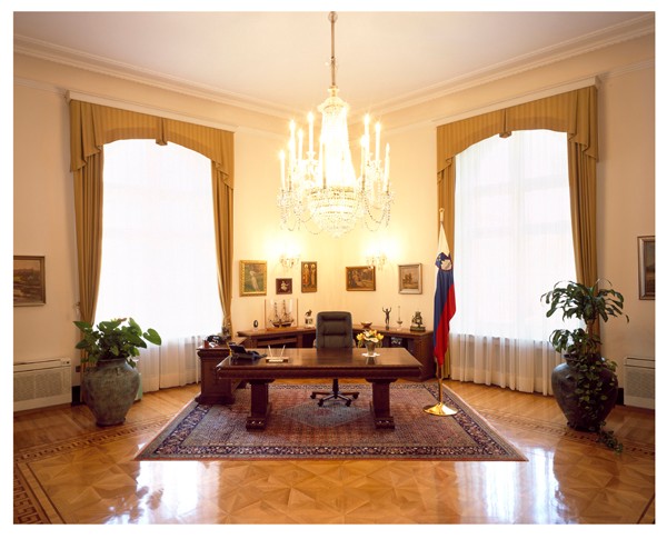 S serijo Interierji II se je Salaj lotil mnogo bolj diferenciranih prostorov: v kvantitativno skromnejšem nizu se nahajajo podobe reprezentativnih lokacij, povezanih s pojmom državnosti in države. Velikoformatne frontalne fotografije notranjščin osrednjih prostorov Ustavnega sodišča, parlamenta ter pisarne predsednika Republike – tem trem se pridružuje še posnetek administrativnih prostorov na Parmovi ulici – znova kažejo tisto, kar se na prvi pogled zdi razmeroma običajno in vsakdanje. Upodobljeno skuša biti znova čimbolj istovetno dejanski resničnosti. Ker niso neodvisne od svojega referenta, nam te fotografije kot temeljite analogije omogočajo predvsem globlje zavedanje resničnosti, ki šele na teh fotografijah postane zares »vidna« in transparentna. Fotografovo skrajno objektivistično stališče tudi tokrat izključuje vsako sled refleksivnosti, vsako sled subjektivitete. Namesto tega nas fotografije obsipajo z množico verističnih detajlov, ki zgovorno pričajo o funkcionalnosti teh prostorov, kot tudi o njihovi simbolni vlogi. Skoznje preseva ideologija, ki terja določene ritualne in estetske oziroma arhitektonske dispozicije – v čemer je skrit tudi osrednji naglas teh del